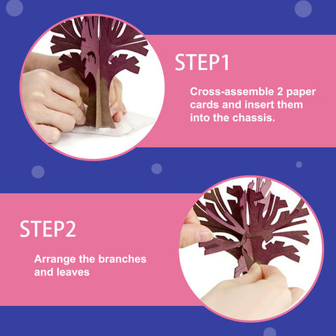 • Put the paper tree in a proper position, and then cut the growth water package at a slant, pour the water into the chassis (do not need to pour it into the tree). After about 2 to 3 hours, you can see that the branches start to grow.